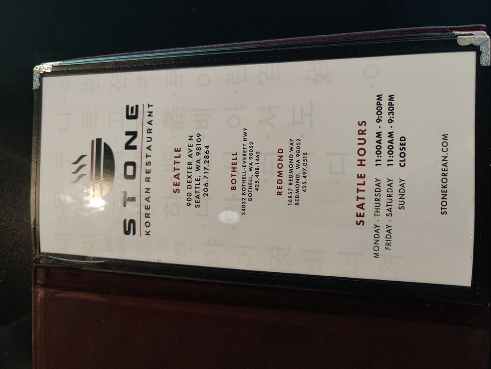 Stone Korean Restaurant in Seattle's South Lake Union area is a must-visit for Korean barbecue enthusiasts. With a menu featuring a variety of soft tofu soups, appetizers like chicken wings and gyoza, and hearty soup and stew options, this restaurant offers a diverse selection for all palates. Customers rave about the flavorful kimchi pancake with cheese and the satisfying combo sets that include meat dishes and bibimbap. The establishment's impeccable service and well-maintained ambiance make for a pleasant dining experience. Guests appreciate the convenient street parking, attentive staff, and top-notch ventilation. Stone Korean Restaurant stands out for its delicious food, excellent service, and comfortable atmosphere, making it a go-to spot for Korean cuisine in the area.